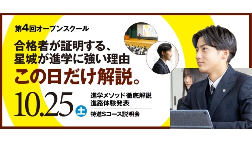 星城に特進コースが誕生して四半世紀、脈々と受け継がれてきた「星城・進学のヒミツ」を進学指導部部長がとても分かりやすく、丁寧にご説明します。また、本校卒業生や在校生も学校生活から見た「星城のリアル」をご紹介します。