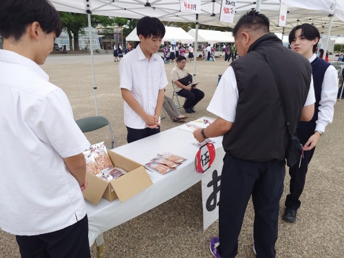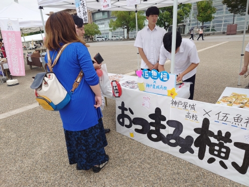 神戸星城高校も、今夏に「伍魚福 梅田阪神店」にてご協力いただきました「KOBE 伍魚福」様の商品などを仕入れ・販売を行いました。その時に学んだ販売方法や立ち姿などを思い出し、15時には仕入れた商品が完売しました。
