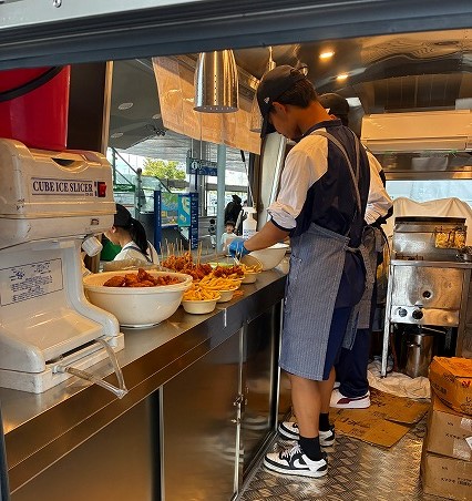当日は、キッチンカーの定番メニューであるからあげやポテトに加え、神戸空港の国際線を意識した「上海焼きそば」なども販売し、多くの来場者の皆様にご好評をいただきました。