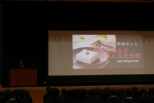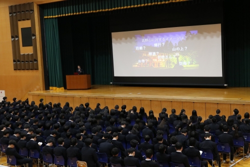 角濱様は事業の中で「高野山に来ていただいた方に、来てよかったと思ってもらいたい」という理念を大切にしており、歴史ある高野山の伝統を次世代へ紡ぐために、「変わらないためにも変わり続ける」と事業の想いを生徒たちへ伝えていただきました。
