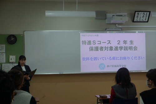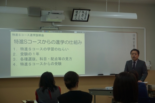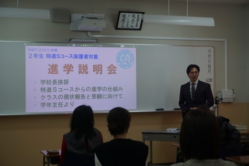 12/4(木)、期末考査終了後に特進Sコース2年生保護者対象進学説明会を実施しました。
