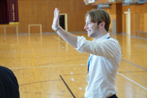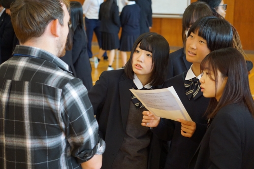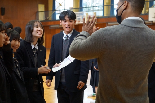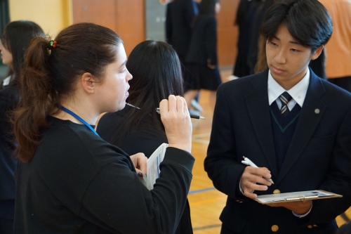 1日目とは異なり、今日は体育館でのレクリエーションもありました。事前に提示された質問を10名の先生全員に話しかけてインタビューし、答えをもらった後、もらった答えを用いて最後にクイズに答えるというものです。