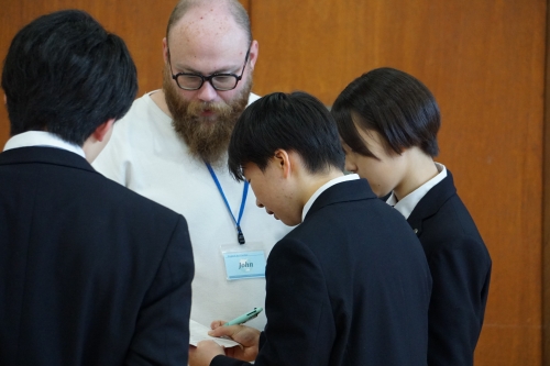制限時間内に全員の先生と話すためにせかせかしながらも、終始楽しそうに英会話を楽しみ、一生懸命に言葉を紡いでいる姿やジェスチャーを使いながらハキハキ話す姿などが見受けられ、全員が受け身ではなく積極的に取り組むことができました。