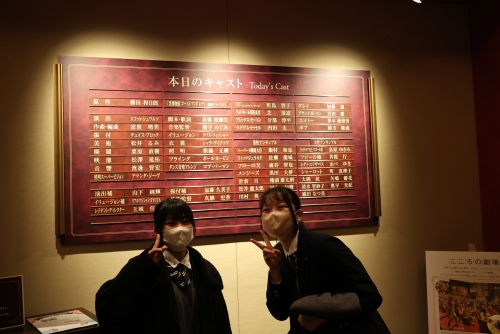 12月17日(水)、3年生の学年行事「芸術鑑賞会」で劇団四季を観に行きました。今回は『ゴースト&レディ』という作品を鑑賞しました。