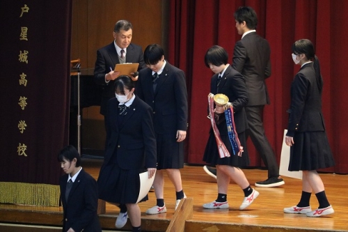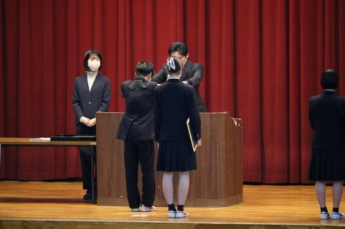 始業式の後には、表彰伝達式を行い、各クラブ活動や分野で努力を重ね成果を収めた生徒たちにトロフィーや賞状が授与されました。生徒一人ひとりが新たな目標を胸に、3学期をスタートさせていきましょう。