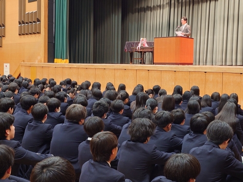 3月19日(木)、令和7年度3学期の修業式を行いました。1・2年生から各代表生徒への通知表授与・校長表彰の後、修業にあたって校長先生から話がありました。