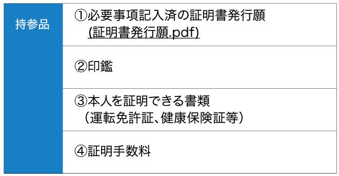 各種証明書が必要な場合は、次の方法で申し込んでください。