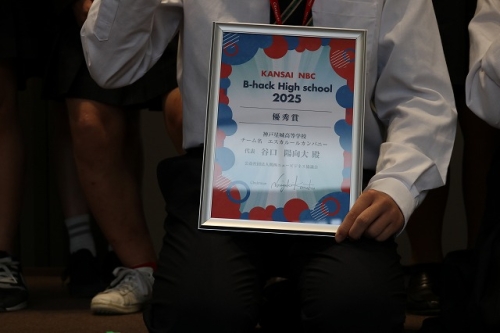 また14時以降は、「フューチャーライフヴィレッジ」にて特進Sコース生が出場中の「高校生ビジネスプランコンテスト 関西NBC B-hack High school」の本選がありました。本校からは2組が受賞者として選出され、多くの審査員を前にプランの発表をしました。結果は以下になります。詳しくはこちら