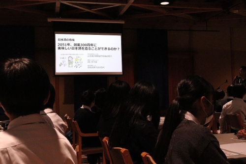 神戸酒心館様では、地場産業である灘の酒造について、事業の取り組みや歴史を座学と見学で学び、最後はSDGs課題に対するディスカッションを行いました。