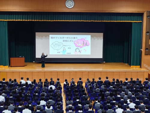 本日(10/29・水)、5・6校時の時間を利用して、第一線で活躍されている経営者である池端様にお越しいただき、講演会を行っていただきました。特進Sコース生は、普段から池端様が所属されている「関西ニュービジネス協議会(関西NBC)」には「経営者によるセミナー」などで大変お世話になっています。