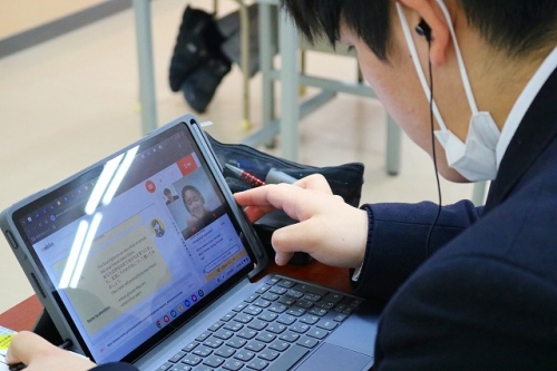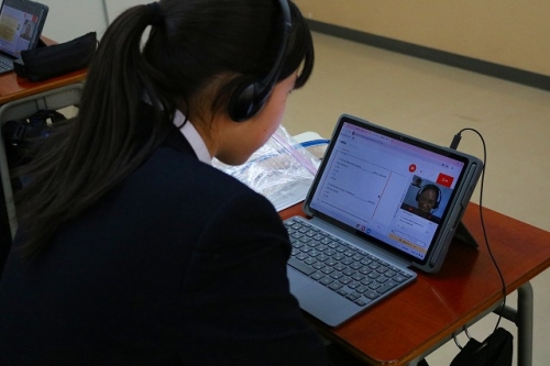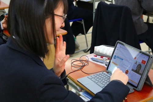 2/13(金)、特進Sコース1年生の「論理・表現」の授業内で「オンライン英会話」学習が行われました。実践的な学習を通して”英語で聞く・英語で話す”ことに慣れ、主体的な英会話スキルを身につけることが目的です。